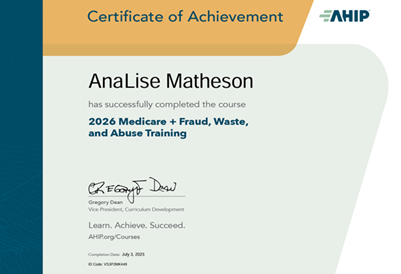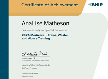 AnaLise "Bean" Matheson brings more than twenty years of experience across Medicare, long-term care, retirement planning, estate strategies, life and health insurance, and living benefits. Licensed in Utah, Idaho, and Arizona, she blends deep insurance expertise with hands-on understanding of the medical system, having spent years navigating pre-authorizations, denials, and complex revenue cycles. This gives her clients a level of insight and guidance that goes far beyond “standard” insurance advice.